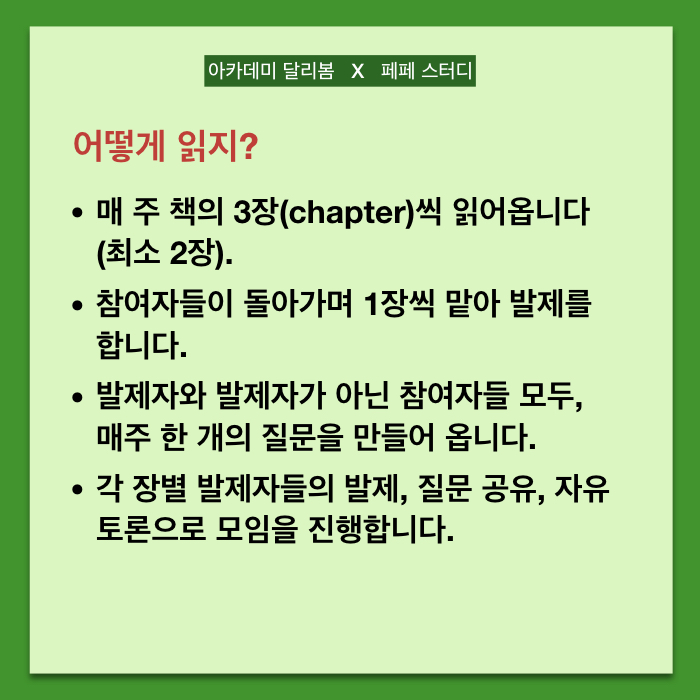 2019 페페연구소 책읽기 모임 : 책방 달리봄
