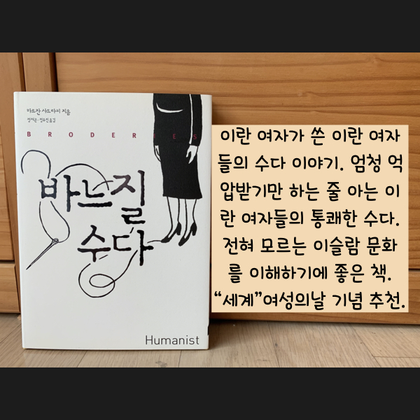 3. 바느질 수다: 이란 여자가 쓴, 이란 여자들의 수다 이야기. 역시 그래픽 노블입니다. 이란이라고 하면 '무슬림'이라는 안개에 뭉뚱그레 가려져서 엄청 억압받고 살기만 하는 것 같지만, 어떻게 그 안에서 그녀들이 통쾌한 수다로 삶을 살아내고 있는지 알 수 있게 해주는 책. 그냥 여성의 날이 아니라 "세계"여성의 날을 맞아, 나와 다른 세계에 살고 있는 여자들을 이해하자는 의미에서 넣어봤습니다. 재밌어요. ^^