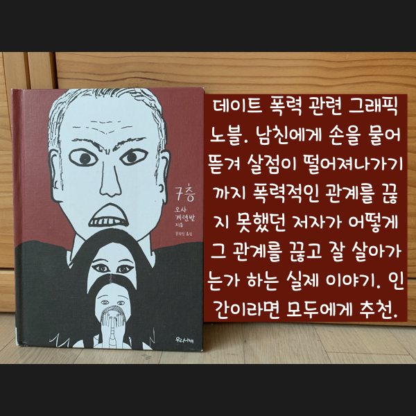1. 7층: 운전 중 남자친구에게 손을 물어뜯겨 살점이 떨어져나가기 까지 그 폭력적인 관계를 끊지 못했던 저자의 자전적 이야기. 어떤 식으로 정신적 신체적 폭력을 당했으며, 어떻게 그 관계를 끊어나가는지를 그린 이야기입니다. 인간이라면 누구나 모두에게 추천합니다.
