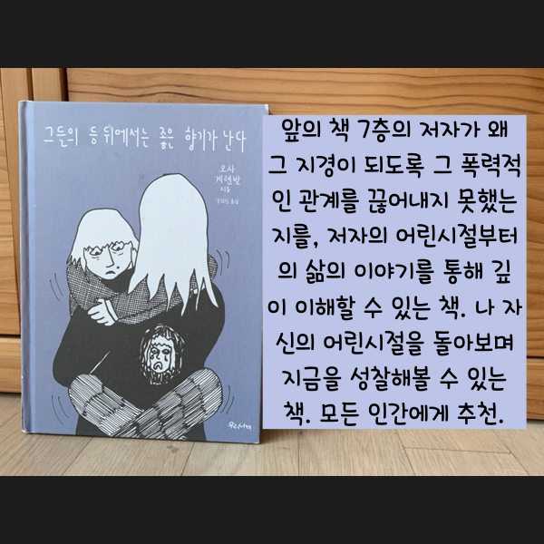 2. 그들의 등 뒤에서는 향기가 난다: '7층'의 저자가 왜 그 지경이 되도록 그 폭력적인 관계를 끊어내지 못했는지를 더 깊이 이해할 수 있는 책이자, 나 자신의 어린 시절을 돌아볼 수 있는 책. 저자의 어린시절부터 살아온 과정 이야기를 통해, 왜 저자가 그렇게 살았었는지를 이해할 수 있습니다. 그리고 나 자신의 어린 시절을 돌아볼 수 있습니다. 이 역시 인간이라면 누구에게나, 모두에게 추천합니다.
