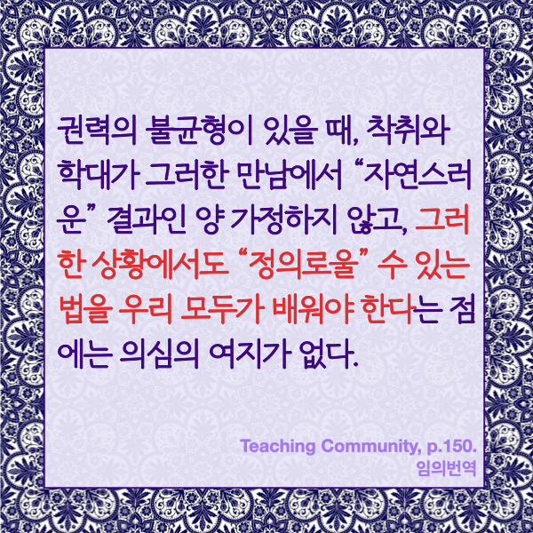 | 혐오발언을 하지 않고 학습 공동체가 되도록 - 벨 훅스 (0) | 2020.04.10 |