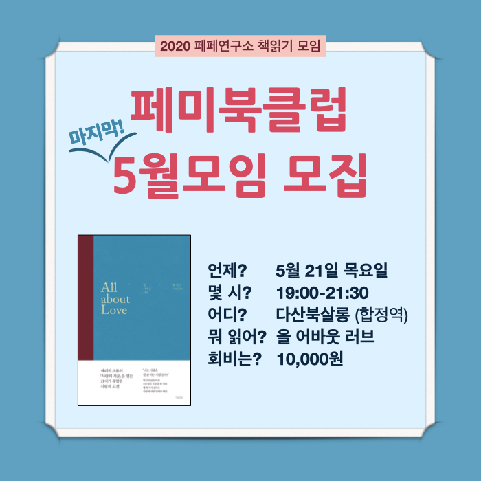 | 페미북클럽 4번째 모임 [3월 -> 4월 순연] (0) | 2020.04.21 |