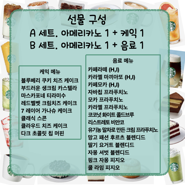 따라서 댓글의 형식은 "책제목/세트 이름(A 혹은 B세트)/케익이나 음료 이름" 이렇게 되겠습니다. (예:성적 동의/A세트/클래식스콘)