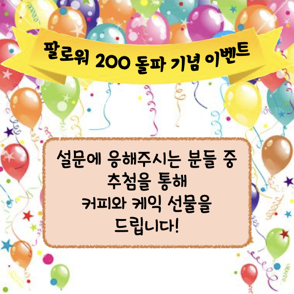 인스타 아는 사람 0명으로 시작한 페페연구소에 팔로워 200명은 너무도 소중한 의미입니다. 감사의 뜻을 담아, 커피와 케익 쿠폰을 선물해드립니다. 위 게시물의 설문에 대한 답과, 받고 싶은 세트(A세트, B세트 중 선택), 먹고 싶은 메뉴(케익, 음료 중 택 1)를 적어서 댓글로 남겨주시면 추첨을 통해 별다방 쿠폰을 보내드립니다.