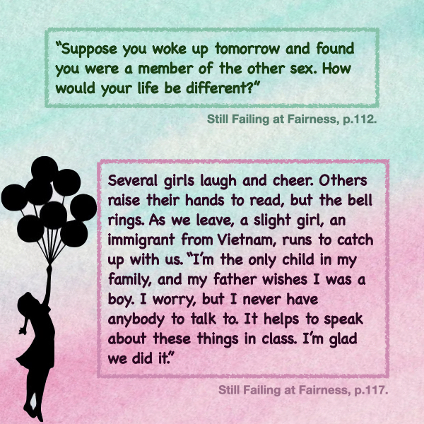 "아침에 일어나니 다른 성별이 되어 있다면?"이라는 연구자들의 이 질문은 사실상 여/남 이분법에 기반한 질문이긴 하다. 어쨌든 그 질문을 했을 때, 대다수의 남자아이들은 내가 여자가 된다면 얼마나 끔찍할지 얘기했고, 많은 여자아이들은 남자아이로 사는 것의 장점을 많이 얘기했다. (자세한 통계치는 책에 나옴)