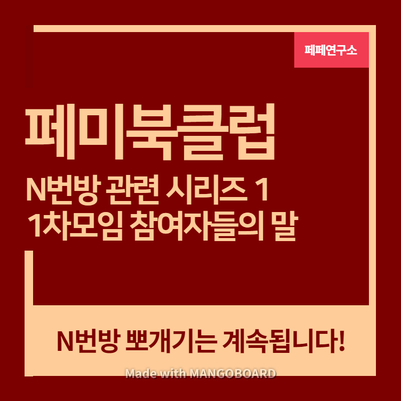 페미북클럽의 새로운 시리즈, N번방 관련 책읽기 시리즈1, 그 중에서도 1차모임 참여자들의 말을 모았습니다. 책을 끝까지 읽어내는 것도, 포르노에 대해 각자의 언어로 말을 하는 것도, 그 무엇도 쉽지 않은 과정이었지만, 그 과정을 거치고 나온 말들은 무엇보다 단단하게 느껴져서 카드뉴스를 만드는 동안 저에게도 힘이 되었습니다.