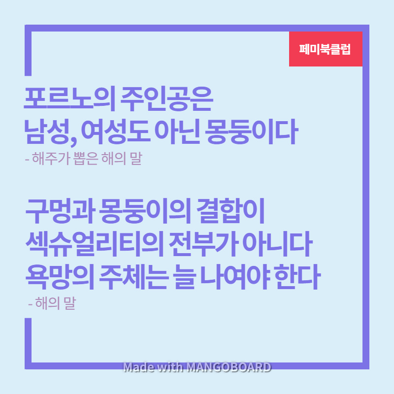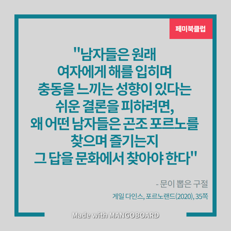 | 포르노랜드 - 책 속의 구절들 [페미북클럽] (0) | 2020.06.27 |