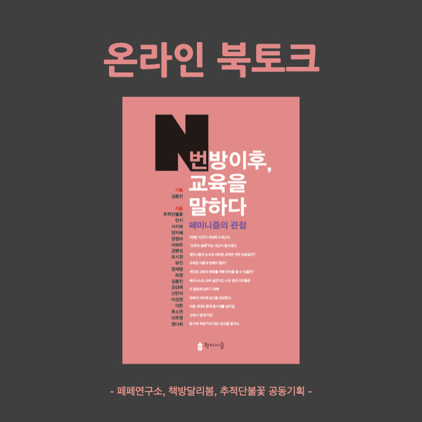 그런 일이 가능할까. 아이들의 또래 문화가, 여성을 인간으로 취급하지 않는 포르노를 공유하는 것이 자랑이자 우쭐할 일로 여겨지지 않고 부끄럽고 죄스런 일로 치부되는 그런 일은 어떻게 가능할까. 가부장적인 집안에서 자랐어도 집 밖의 또래문화로부터 성평등한 관점을 몸으로 체득하는 그런 세상은 어떻게 올 수 있을까. 2회차 북토크의 포인트는 양육자와 교육자가 만나 이야기하는 것이다. 서로가 서로에게, '양육자가 더 중요해~' 혹은 '아니야, 선생님이 더 중요해~' 혹은 '아니야, 학교에서 만나는 친구들이 제일 중요해~' 이렇게 책임을 떠넘기는 것이 아니다. 우리의 아이들이, 다음세대들이, N번방과 같은 일 혹은 이름만 바뀌었지 본질은 같은 그런 일들로부터 자유로우려면, 교육자와 양육자가 함께 어떤 문화를 만들어나가야할지에 대한 고민이다. 자녀가 있든 없든, 결혼을 했든 안했든, 내가 죽으면 나를 이어 이 대한민국 땅에서 살아갈 다음 세대에게는 누구나 관심을 가져야 하지 않을까. 우리가 하는 페미니즘 일들이 결국은 이 땅을 더 나은 세상으로 만들자는 일이니 말이다.