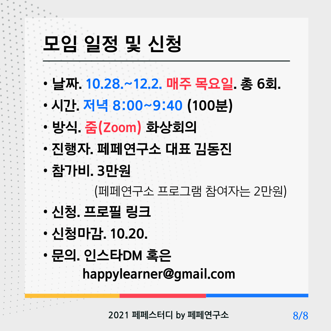 문의: 인스타 DM 혹은 happylearner@gmail.com