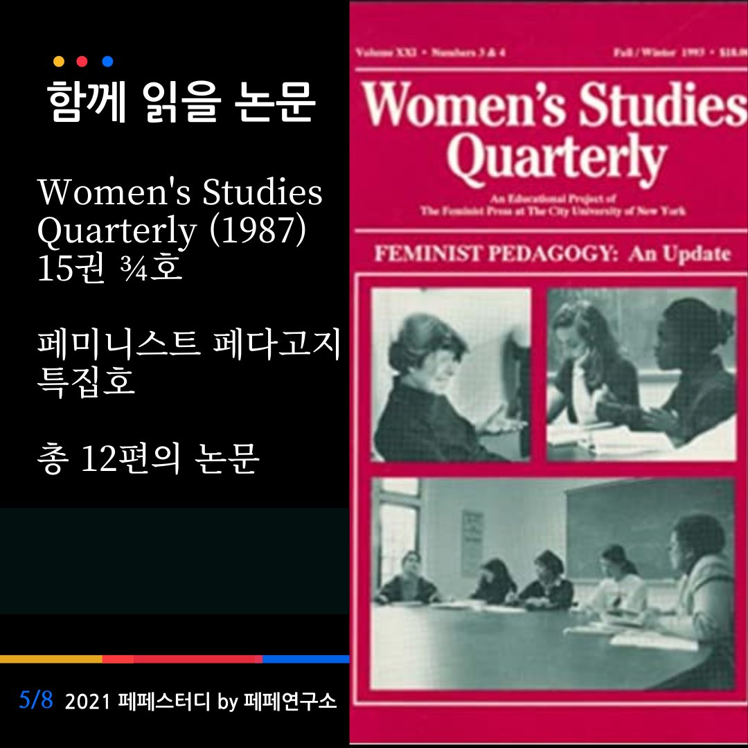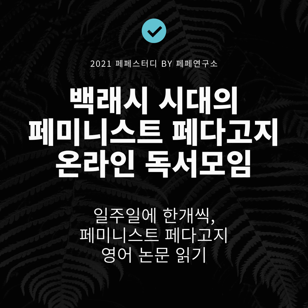6주동안, 1주일에 1개씩, 페미니스트 페다고지 영어논문 읽기, 함께 합시다~!